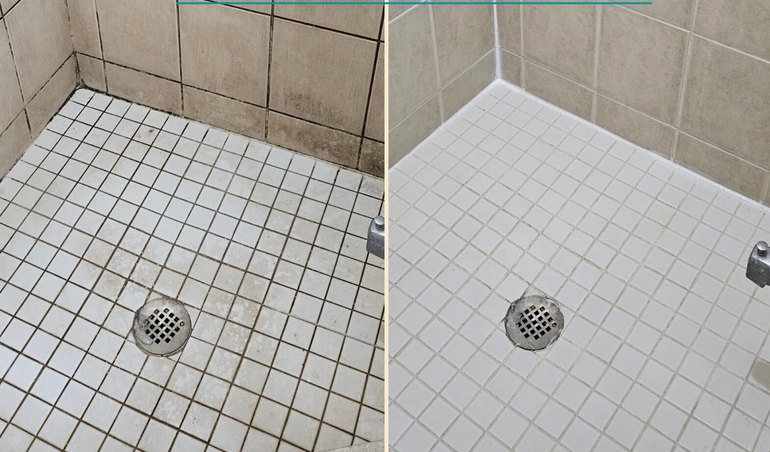 - Deep scrubbing of shower tiles and grout with steam cleaning